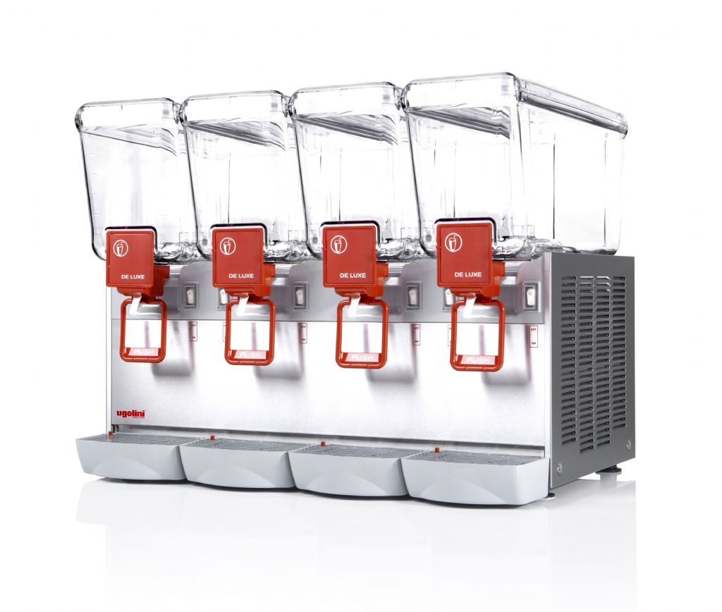 Фонтанный сокоохладитель Ugolini Deluxe 12/4P оснащен 4 емкостями объемом 12 литров. Универсальная и простая в использовании модель предназначена для охлаждения всех видов напитков (натуральные фруктовые соки, кофе, чай, миндальное молоко и т. д.). Жидкости перемешиваются мощным насосом, который перекачивает охлажденную жидкость со дна емкости вверх. Фонтанный сокоохладитель Ugolini Deluxe удобный для соков, изготовленных из концентрата. Быстро и легко разбирается, что позволяет значительно экономить время во время мойки.